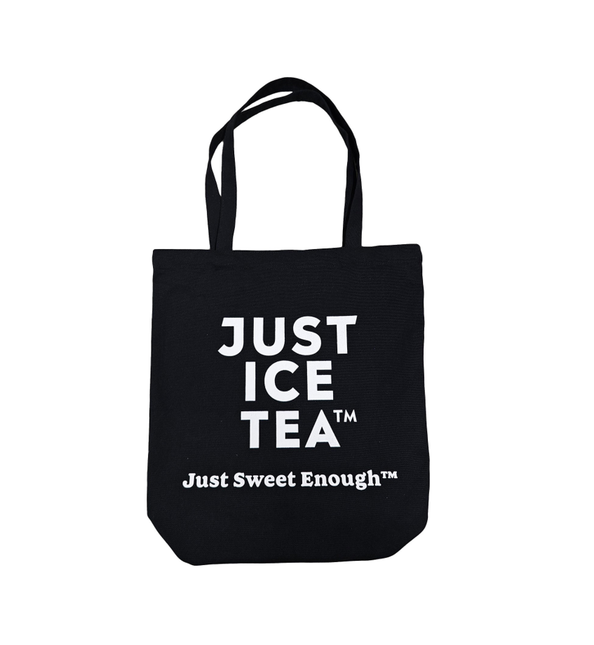 Enjoy our JUST ICE Tea tote bag! Whether carrying our delicious iced tea, groceries, or a good book, this versatile bag can be taken on endless adventures. Dimensions: 17.72” w x 15.75” h x 5” d with 24.5” L handles.